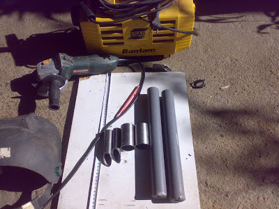 Los tubos mas pequeños (de 20mm) se les corta a inglete para poder dar la inclinación deseada, no pongo los grados por que lo hice a ojo.